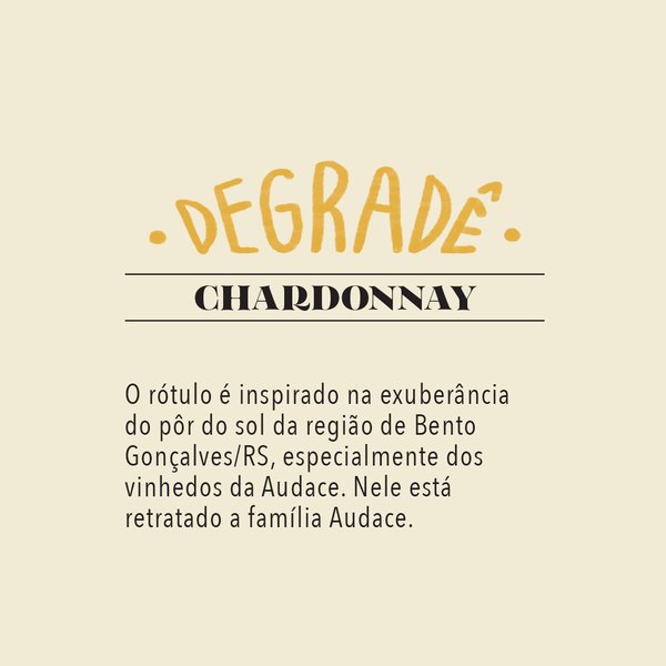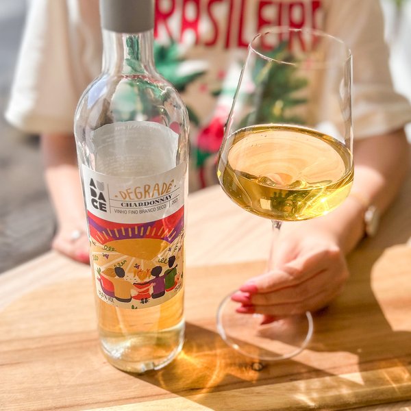 Descubra o Vinho Branco Degradê cotendo 100% uva Chardonnay.