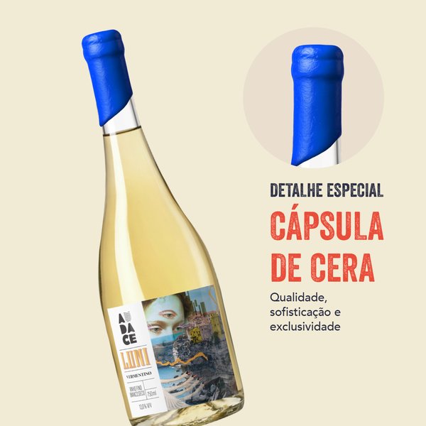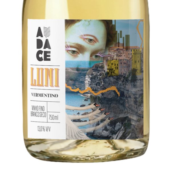 Sobre o rótulo: Luni é uma comuna italiana situada na província de La Spezia, região da Ligúria, no norte da Itália. A uva Vermentino, branca e aromática, é cultivada principalmente nas ilhas de Sardenha e Córsega, além da própria Ligúria, sendo a variedade protagonista dos renomados vinhos brancos Colli di Luni. O rótulo captura de forma abstrata a essência e a beleza desta região vinícola.