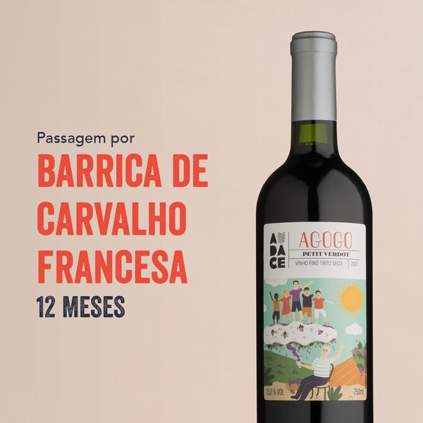 Descubra o Vinho Tinto Petit Verdot Agogo, 100% uva Petit Verdot, com passagem em barrica de carvalho francesa por 12 meses.